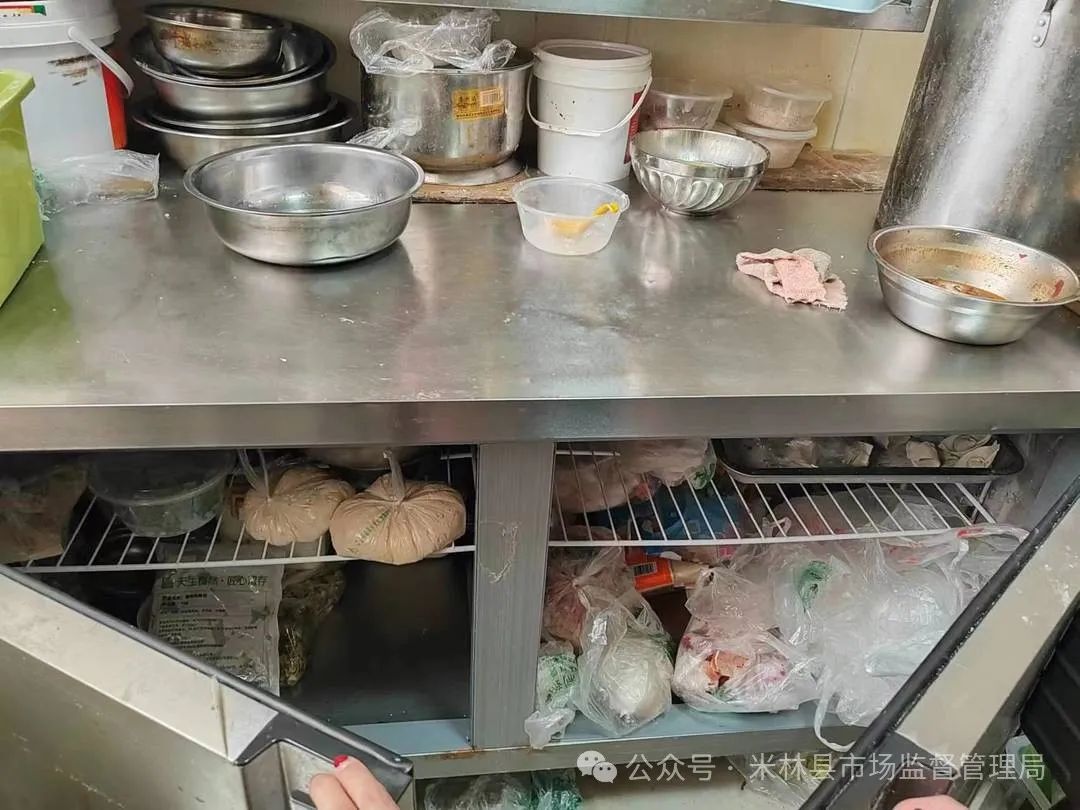 2.操作间内食品原材料未按分类进行摆放。不分食品裸露摆放,存在较大的安全隐患。