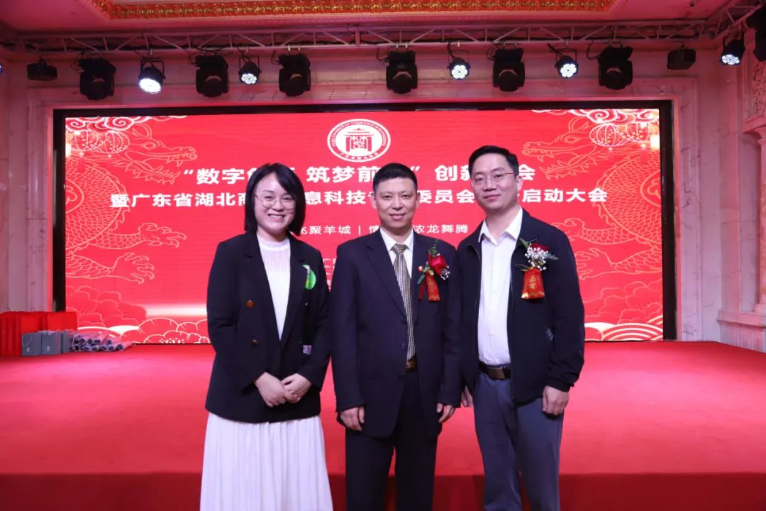▲信息科技专委筹备组负责人 柯长征(中)、秘书处 熊静(左) 广东省湖北商会青年工作委员会执行秘书长 吴风地(右)