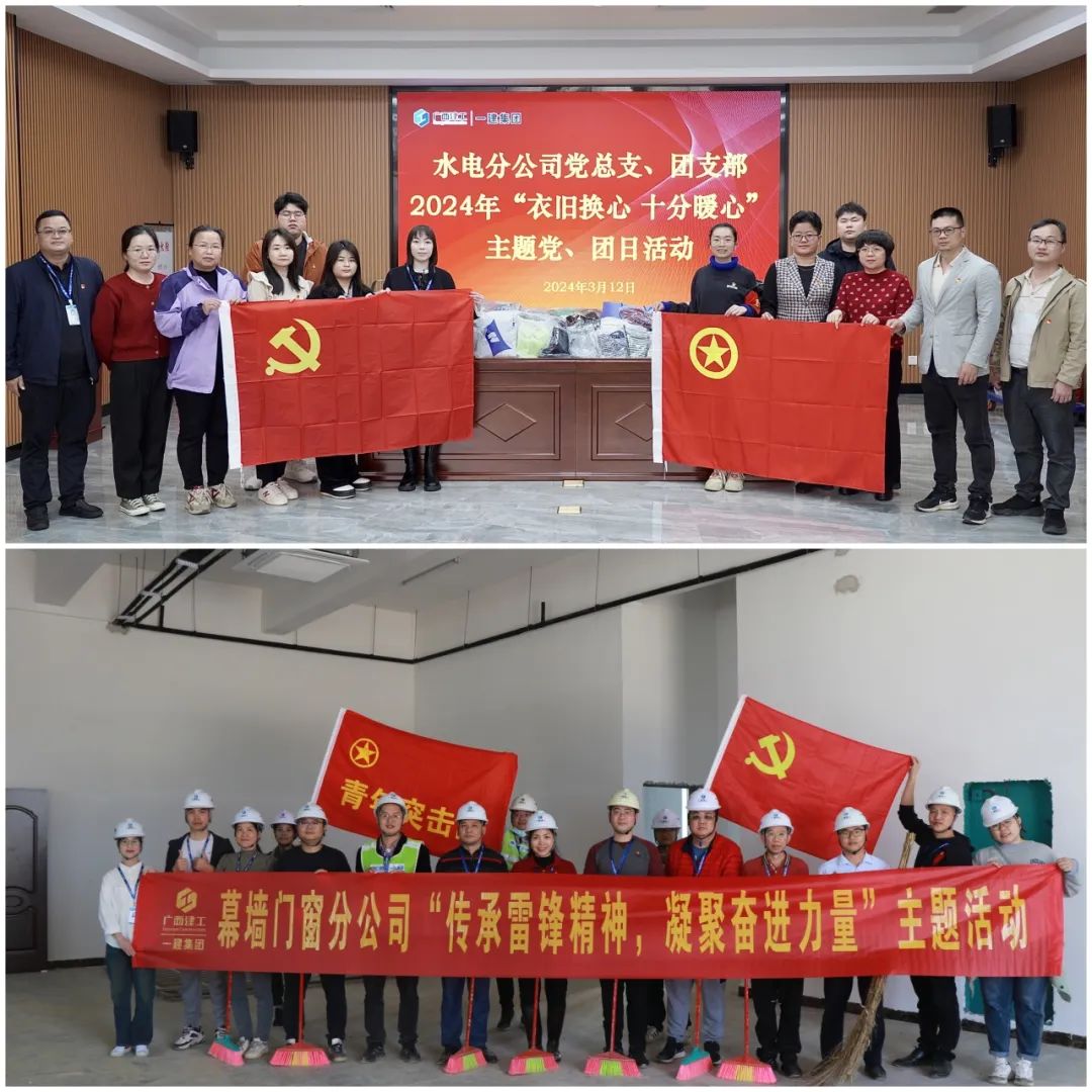 3月是学雷锋月,为深刻把握雷锋精神的时代内涵,传播“奉献、友爱、互助、进步”的志愿服务精神,近日,水电分公司党总支、团支部开展2024年“衣旧换心 十分暖心”主题党、团日活动;幕墙门窗分公司党总支携手国家移民管理局凭祥重点项目,共同开展“传承雷锋精神,凝聚奋进力量”主题活动。