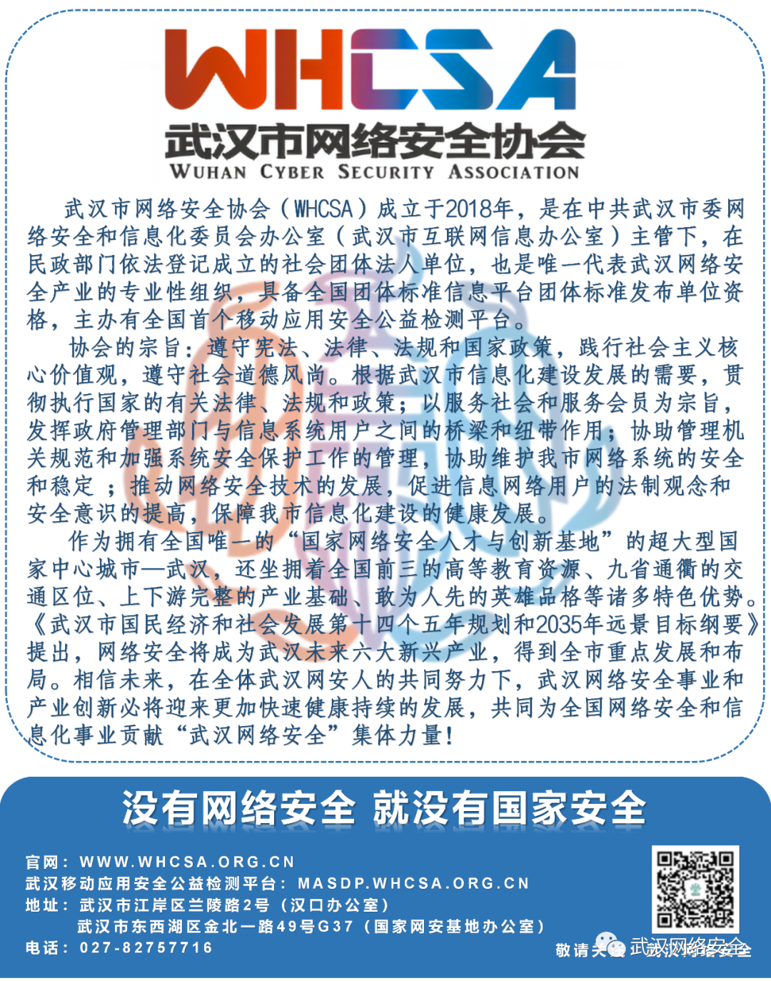 武汉市网络安全协会携手行业伙伴举办武汉网络安全产业创新大会,同期召开武汉市网络安全协会第二届第二次会员大会,有关安排如下: