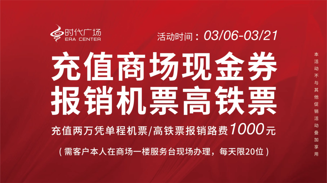 3月6日-3月21日:充值2万可凭机票/高铁票最高报销路费1000元(每天限20名)