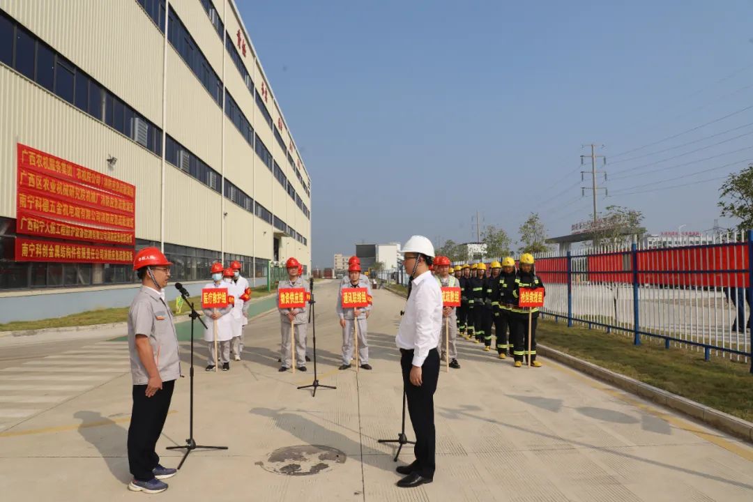 南宁市伊岭岩工业委员会、武鸣区消防救援大队有关领导,广西农投集团经营与安监管理部、各二级板块相关人员参加演练。