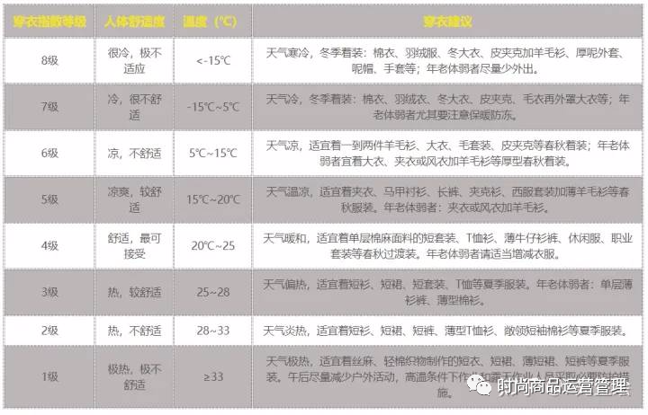 穿衣品类指南等级与温度怎么划分?