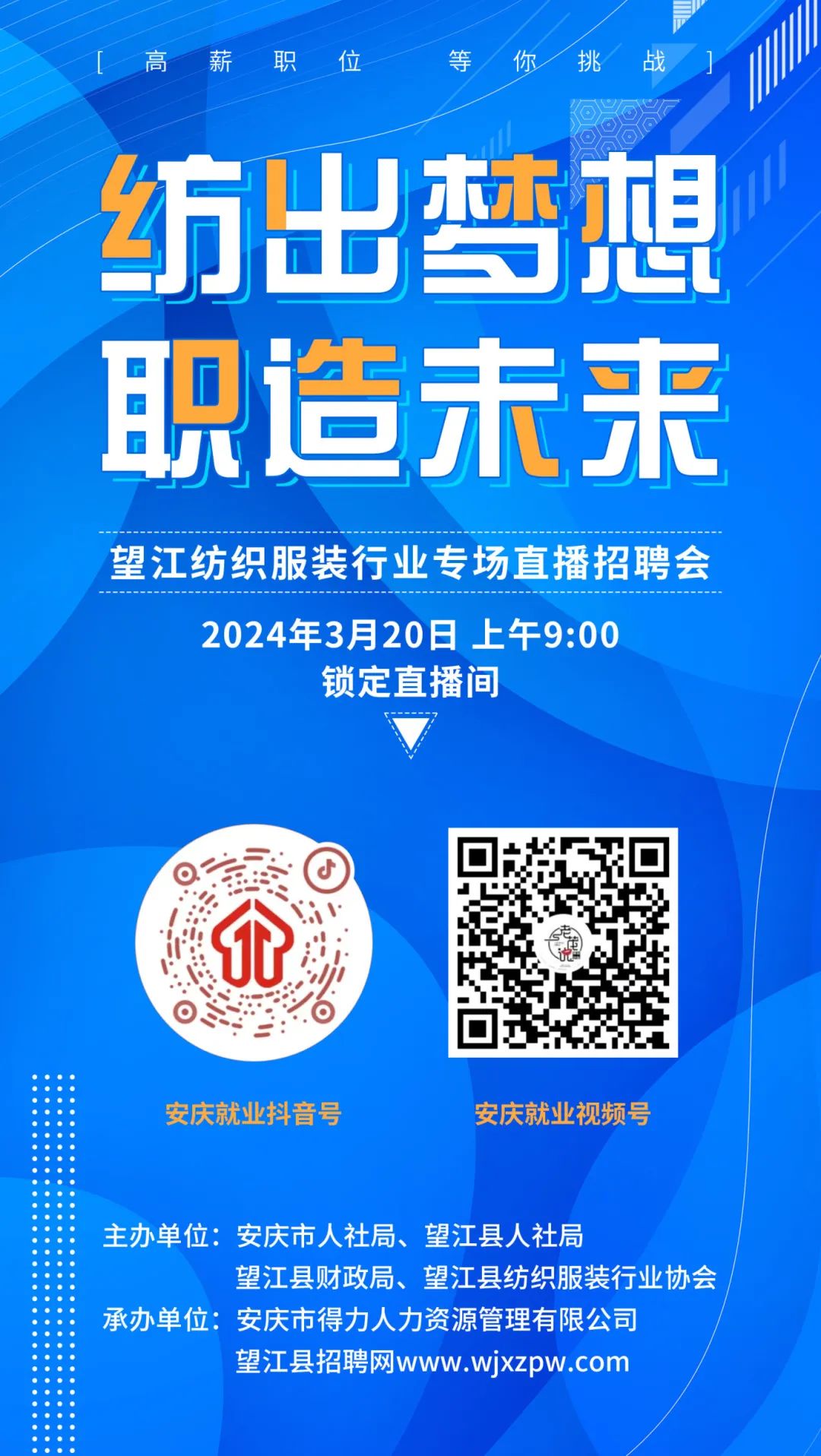 “纺”出梦想,“职”造未来|望江纺织服装行业直播专场招聘会即将开播,更多岗位等你来~