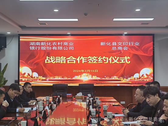 2024年3月15日,新化农商银行与文印行业总商会正式宣布达成全面战略合作。这一重要举措标志着双方将共同致力于推动文印行业的创新与发展,为行业内企业提供更加精准和高效的金融服务。