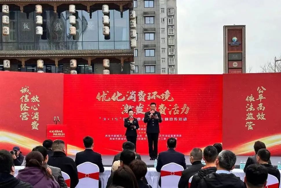 2024年3月15日是第42个“3·15”国际消费者权益日,为进一步营造新时代放心消费的良好购物环境,推动放心、安心、舒心的消费经营理念,3月15日上午,由西安市新城区市场监督管理局主办,“优化消费环境,激发消费活力”2024年“3•15”国际消费者权益日主题宣传活动在益田假日世界购物中心圆满举行。我会执行会长兼党支部书记杨建国,监事长燕新华受邀参加活动。