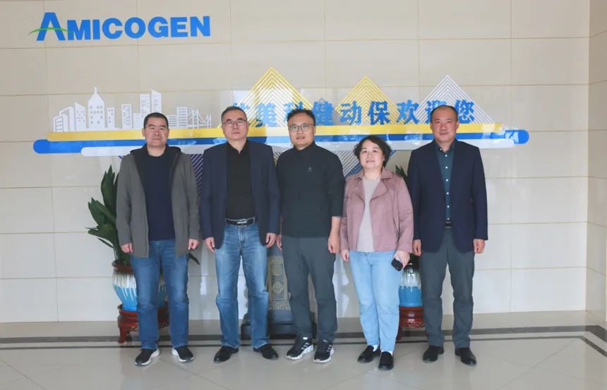 爱猪网领导一行在艾美科健动保生产总监王敏陪同下参观了公司厂区、兽药分厂、泰拉霉素车间,详细了解了公司发展基本情况、动保板块建设优势及研发成果等。