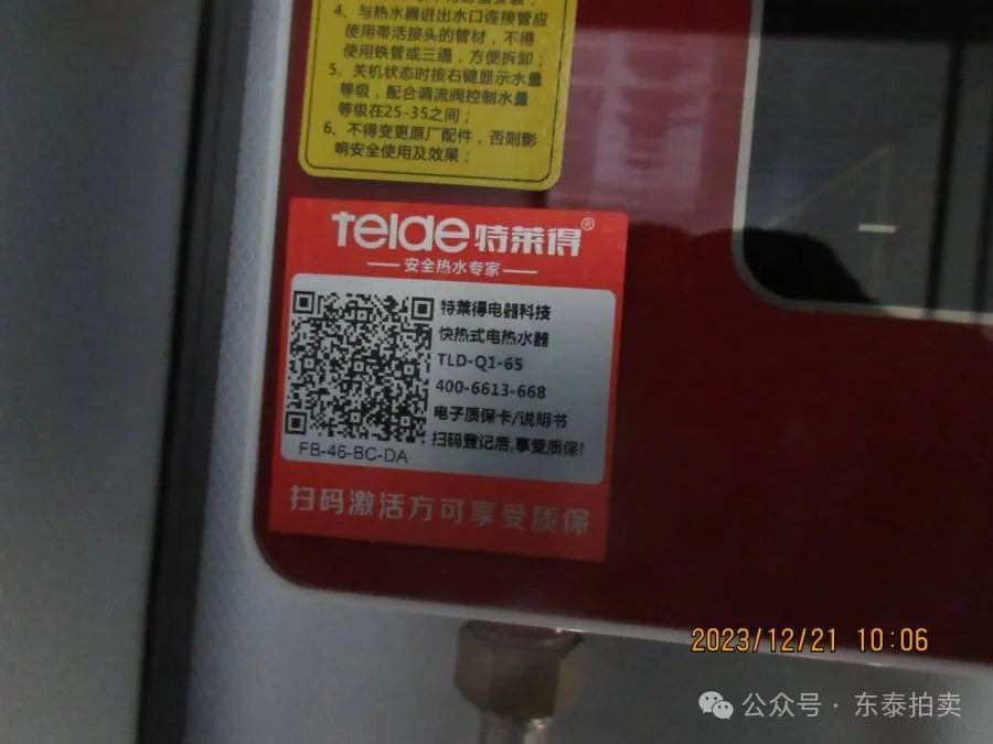 5、存放于郯城县郯城街道窑上村郯城方舱医院的电热水器一宗计586台(其中:特莱得TLD-Q1-65快热式电热水器487台,力诺瑞特KFD75型3级能效空气能热水器99台);存放于郯城县旅游接待中心方舱医院的特莱得TLD-Q1-65型电热水器一宗计82台。两处起拍总价6.80万元(含税),竞买保证金7万元(含安全生产保证金),拆除期限自空调电视拆毕后15天,按委托人通知。
