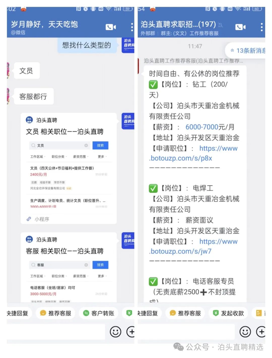 关注“泊头直聘”公众号