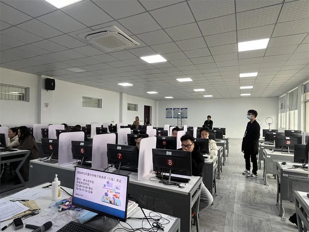 本次职业技能等级认定评价工作在嘉兴职业技术学院开展,上午有34人参加五级电子商务师(网商)考试,下午有16人参加三级电子商务师(网商)考试。在嘉兴市职业技能鉴定中心的指导监督下,协会鉴定中心对报名参加认定的考生进行资格审查、平台备案、考务安排和监督管理等一系列工作。考试期间严格考场纪律,有考务、监考、评审和监督各个环节工作,并留存监控影像资料,力求符合公开、公平、公正的规范管理流程和科学严谨的管理标准。评价考试期间,嘉兴市职业技能鉴定中心派督导人员到现场对考试进行指导和监督。