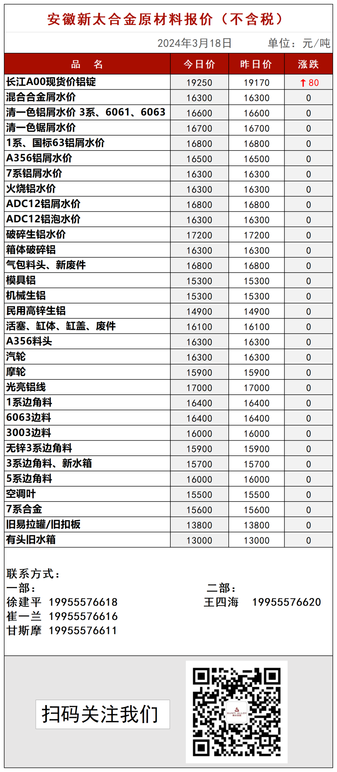 安徽新太合金有限公司3月18日最新报价