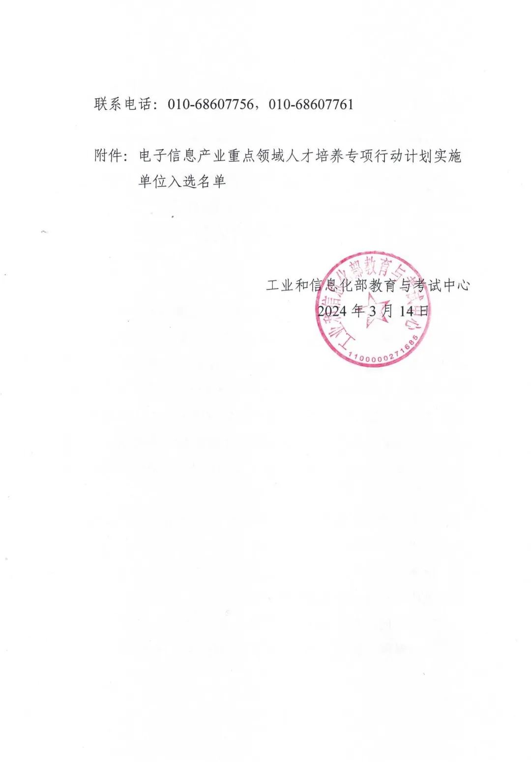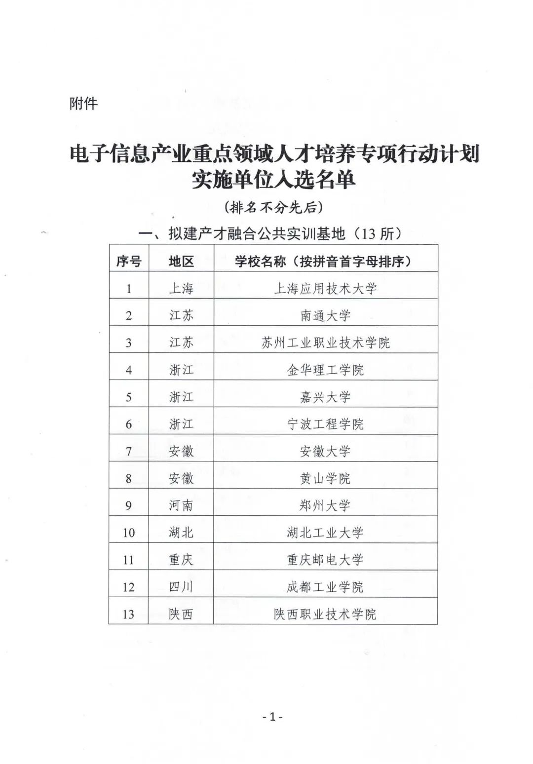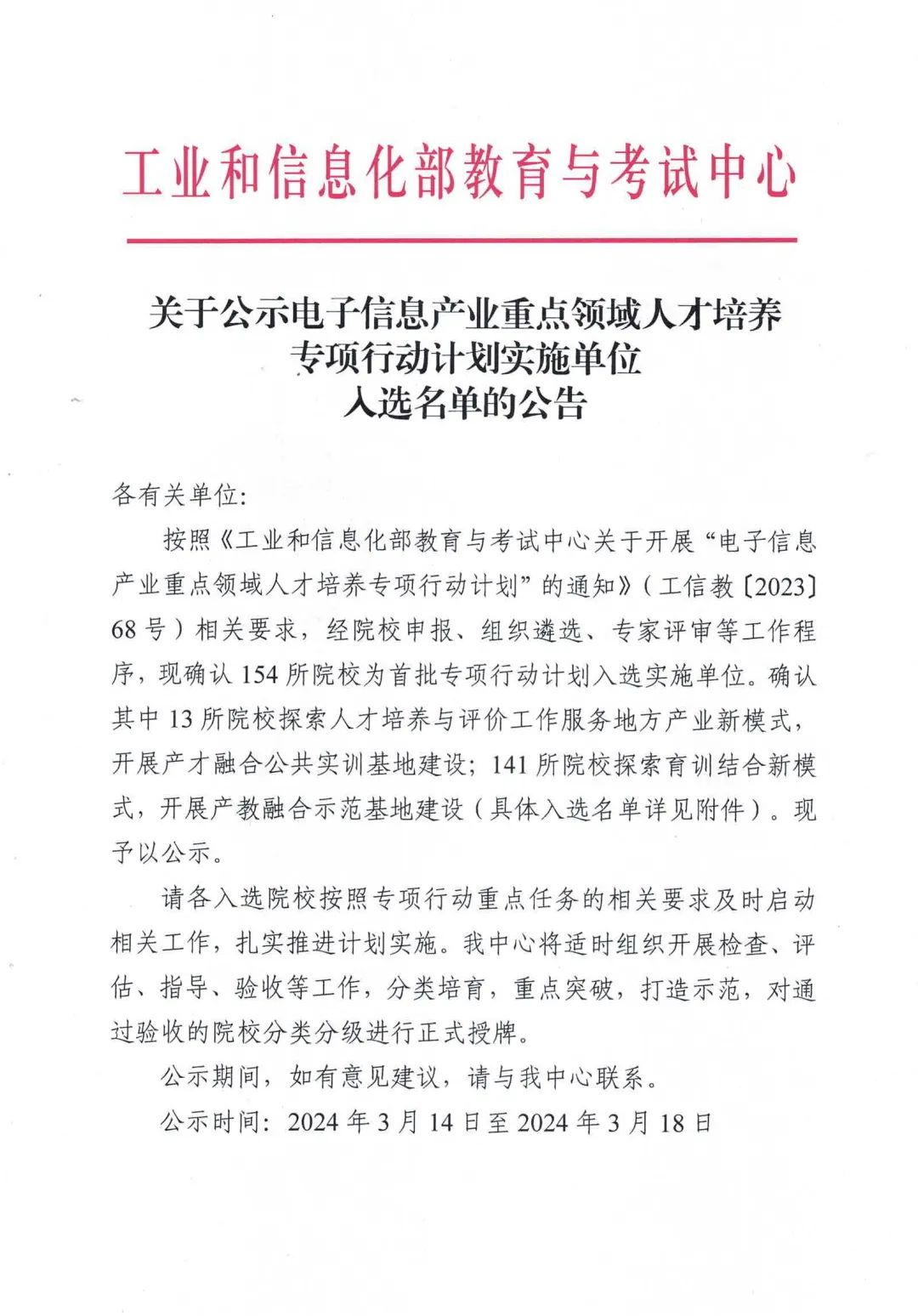 关于公示电子信息产业重点领域人才培养专项行动计划实施单位入选名单的公告