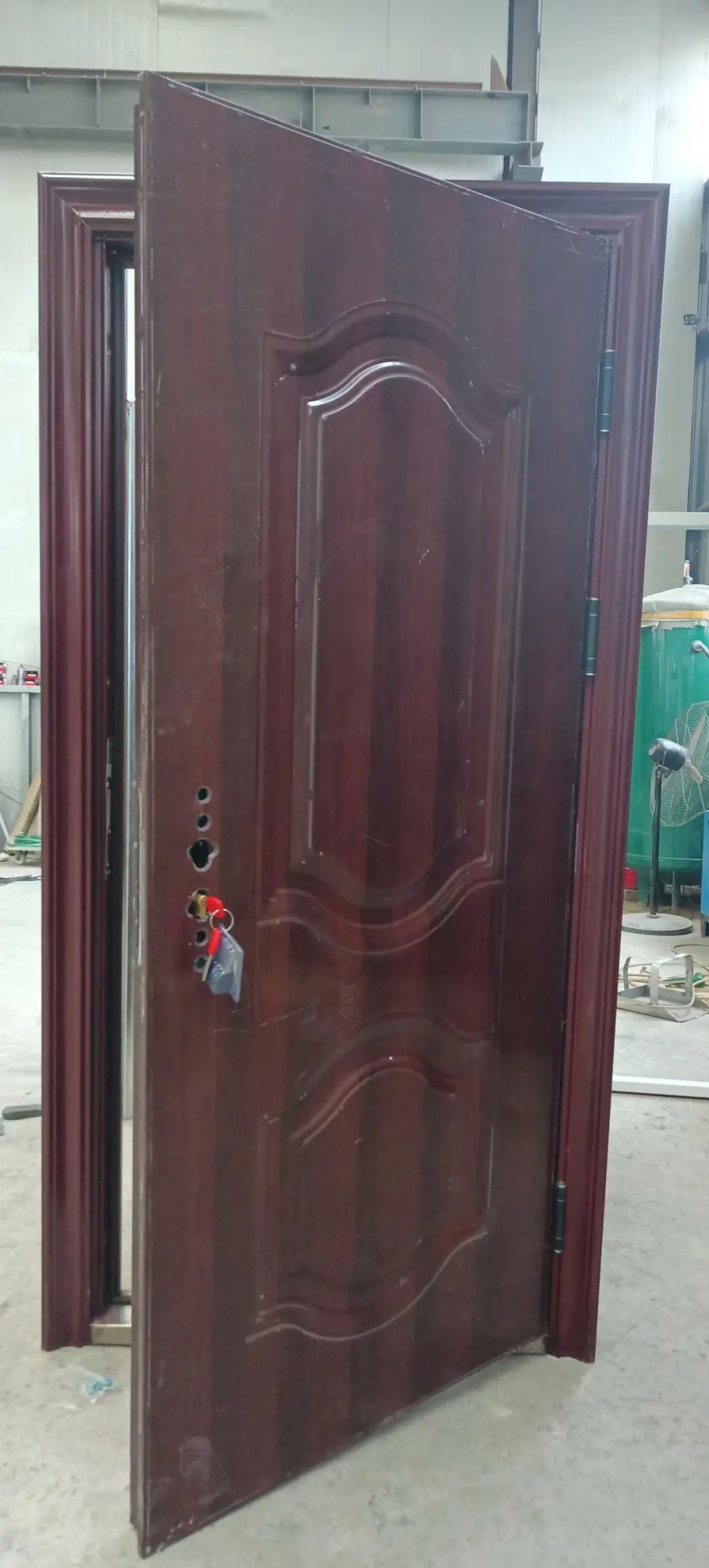 防火防盗防噪音的入户门,优于普通的木质防火门(例如:公共部份的过道门,机防门,和楼梯门,管井门)。在外型,结构,锁具应用木质防盗门的原理和造型,选用防火材料上使用高科技防火板为材料,从而相对提高了该木质防火门的防盗隔音等性能。