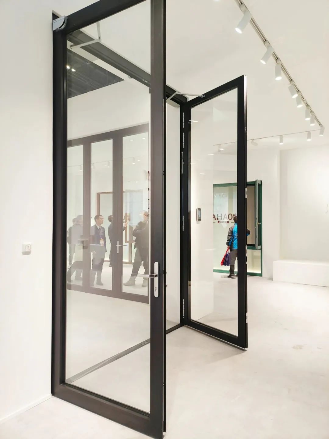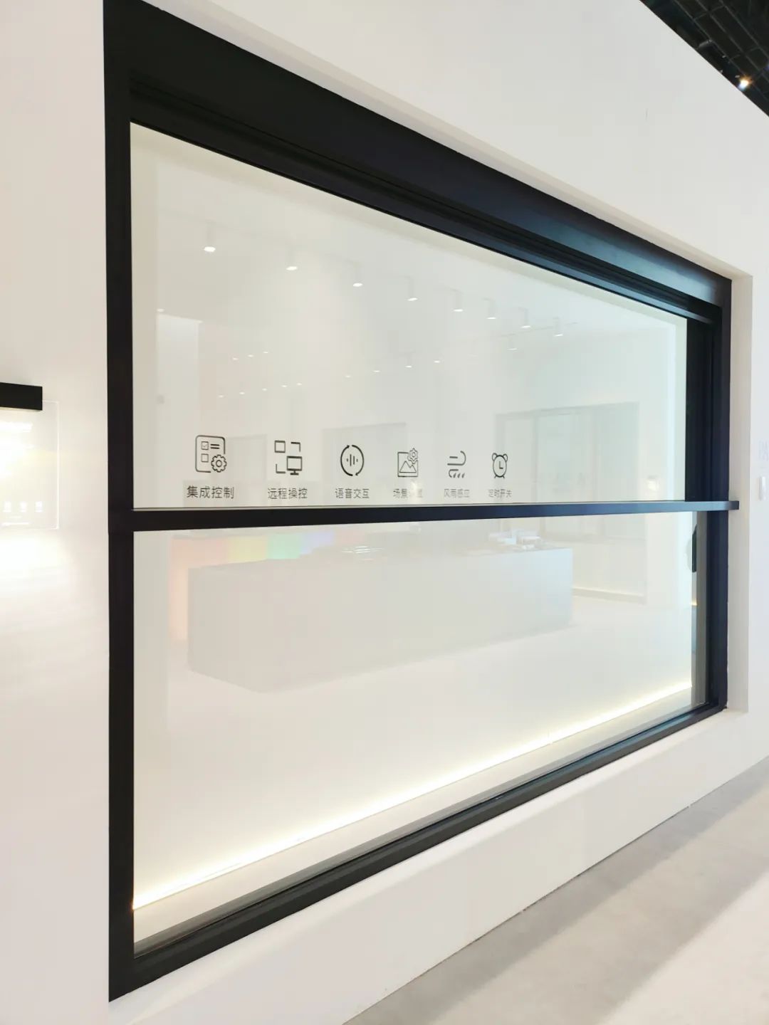 展厅内,感应自动对开门、智能中悬窗、上下智能推升窗,融入了AI识别、智能终端控制技术,创新了门窗的开启方式,打造出一键开启、多场景、大视野的体验;极窄系统窗\铝包木窗系列,迎合了当代消费者极简审美、个性定制的需求;92折叠门,依托智能制造能力、全球优质供应链,以大视野实现内外空间的自由连结。