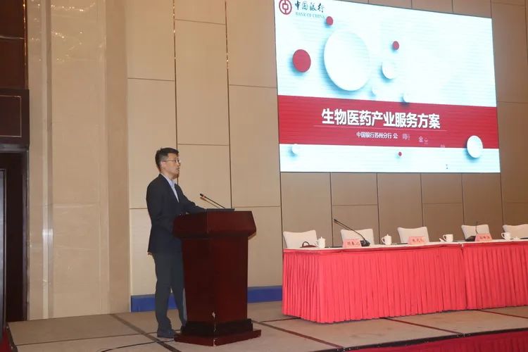 中国银行苏州分行公司金融部科技金融团队主管潘春耀介绍了《生物医药产业服务方案》。