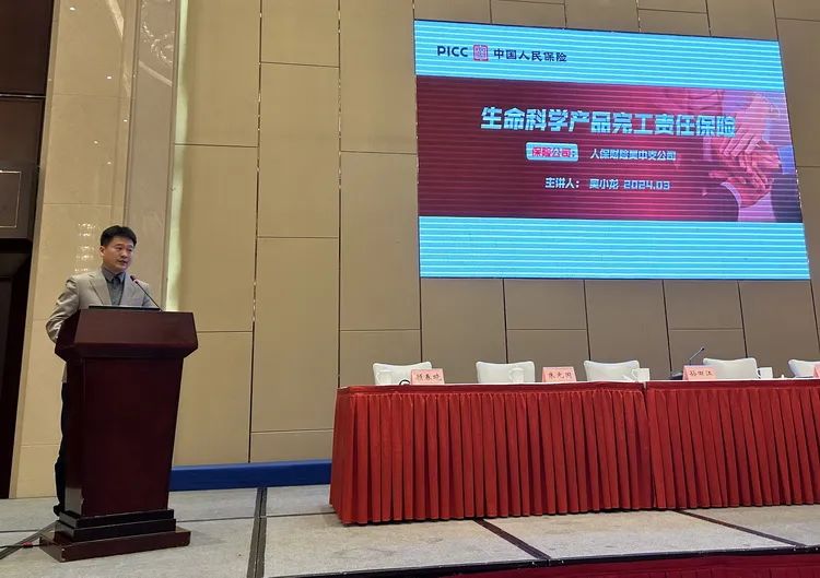 中国人保财险吴中支公司项目经理吴小龙作了《生物医药全产业链责任保险产品介绍》。