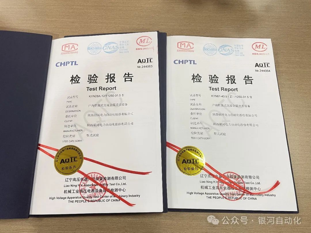 为提高产品的竞争能力,进一步服务广大客户,近期,公司取得由机械工业高压电器设备质量检测中心颁发的户内铠装式交流金属开关设备(KYN28A-12/T1250-31.5)和户内铠装式交流金属开关设备(KYN61-40.5(Z)/1250-31.5)产品型式试验报告。