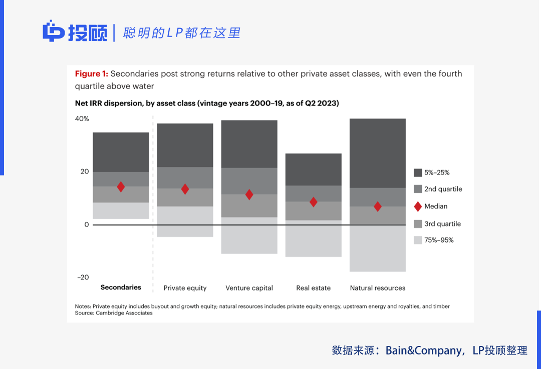 相较于其他私人资产类别,PE二级市场回报强劲。