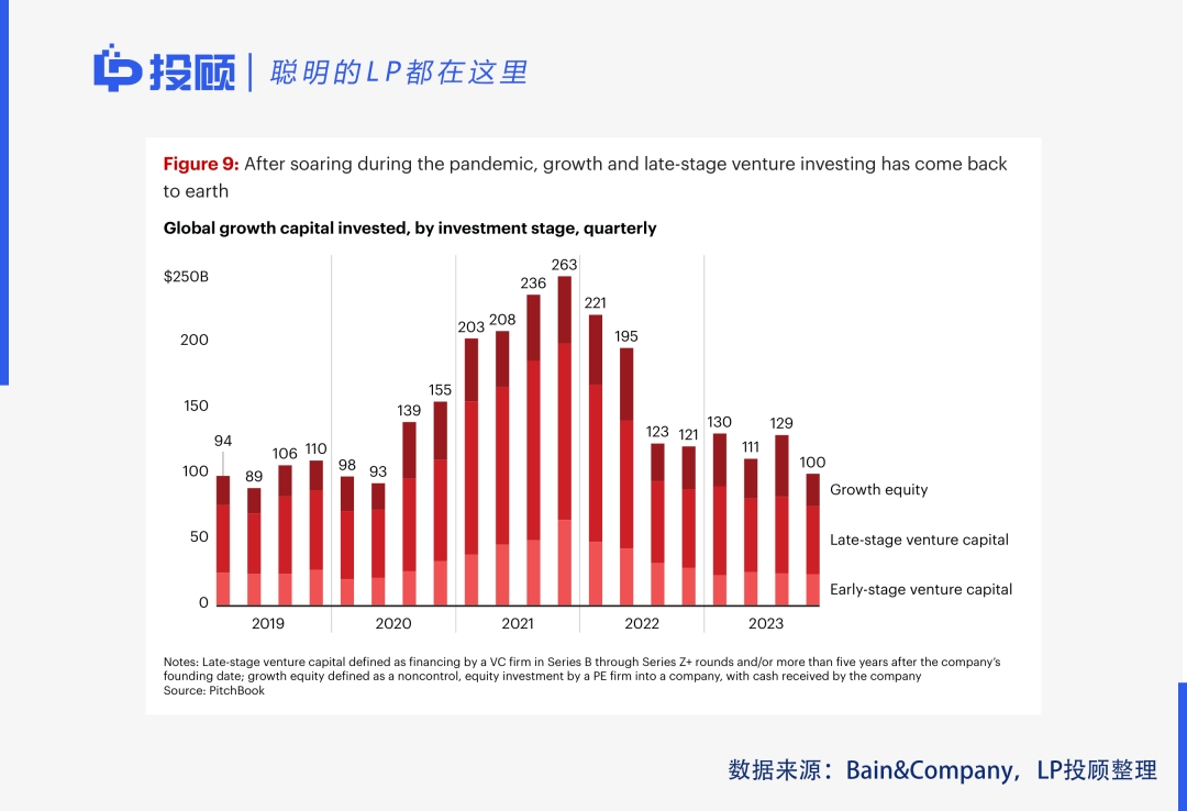 受利率压力、2022年加密货币崩盘、2023年硅谷银行事件等影响,经历疫情期间的激增后,成长性股权投资和风险投资已归于平静。