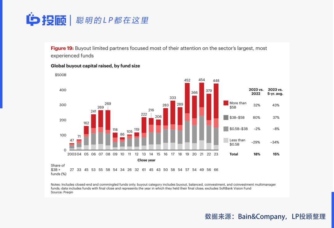 并购基金的LP更加关注基金的规模和经验。排名前20的基金筹集了51%的资金。