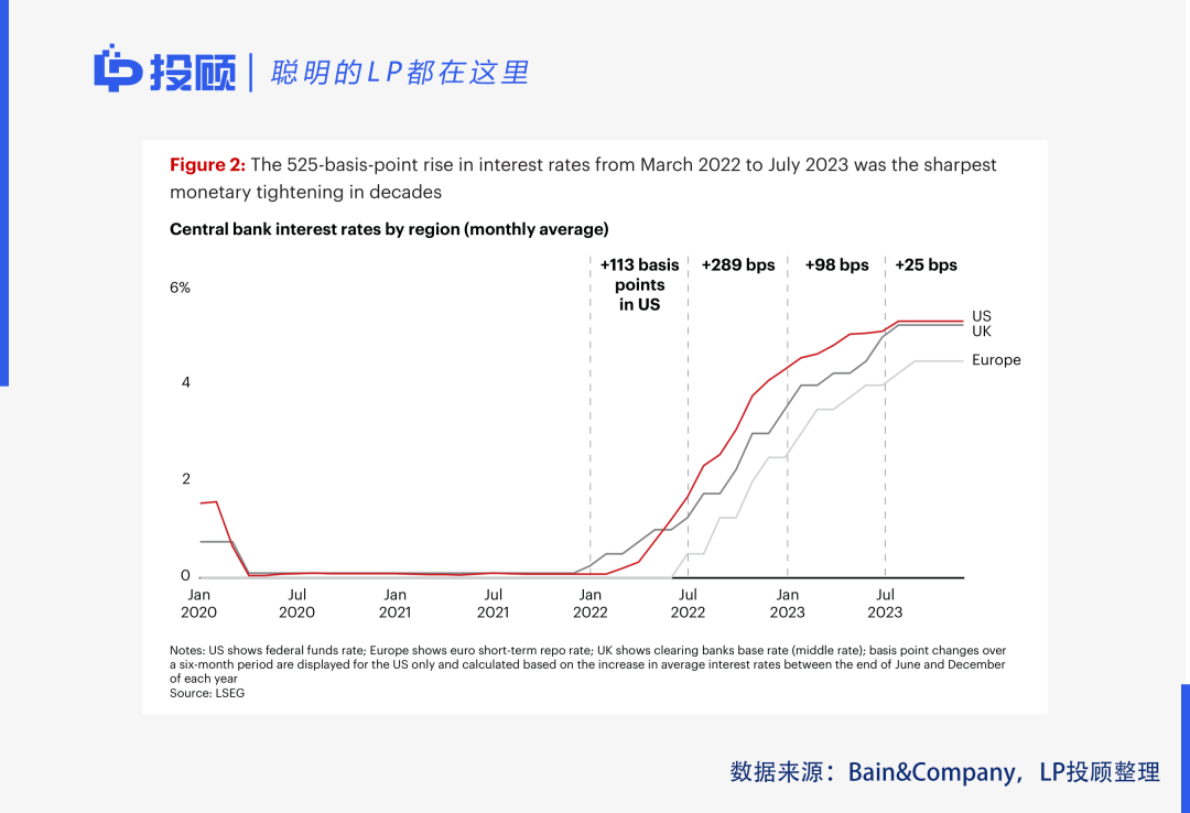 当美联储以20世纪80年代以来最快速度加息时,私募股权市场的交易信心首当其冲,衰退从2022年下半年开始,一直持续到了2023年。