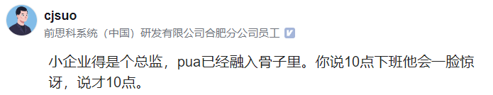 有人说:小企业得是个总监,pua已经融入骨子里。你说10点下班他会一脸惊讶,说才10点。