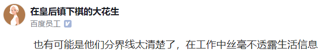 有人说:也有可能是他们分界线太清楚了,在工作中丝毫不透露生活信息