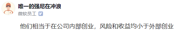 有人说:他们相当于在公司内部创业,风险和收益均小于外部创业