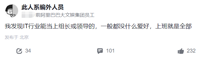 前阿里员工爆料:IT行业能当上组长或领导的,一般都没什么爱好,上班就是全部.