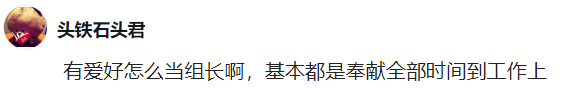 有网友说:有爱好怎么当组长啊,基本都是奉献全部时间到工作上