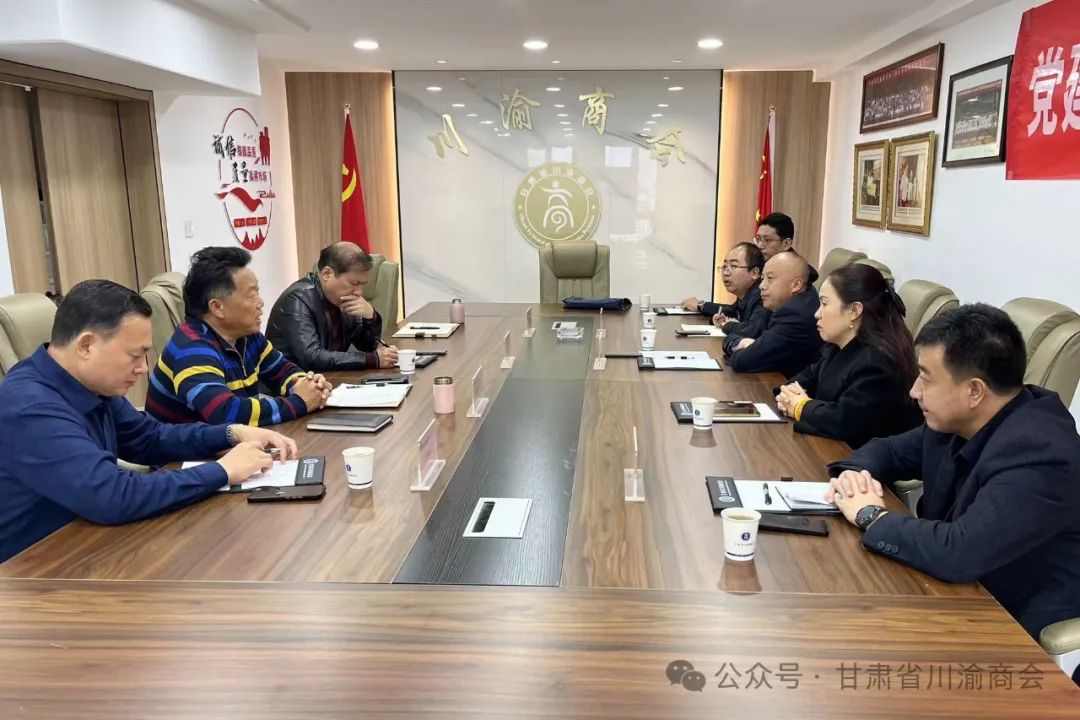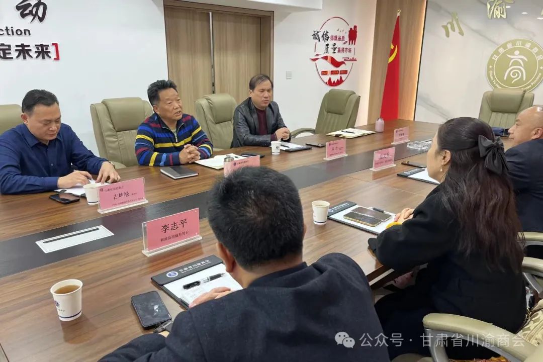 甘肃省川渝商会轮值会长朱君,副会长古坤禄,秘书长谭宏伟,办公室主任刘亚莉热情接待。随后,大家在会议室展开交流座谈。