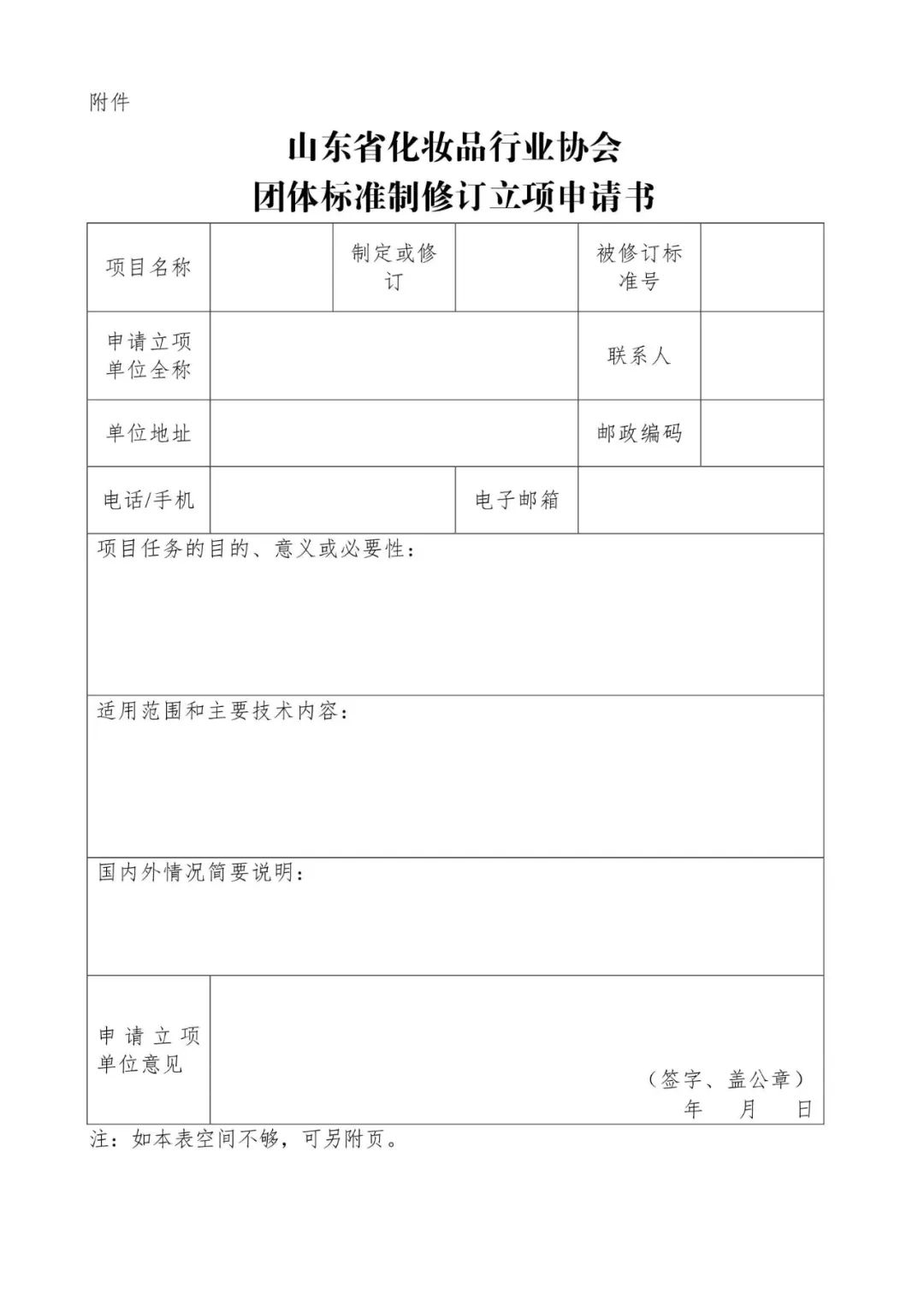 附件:山东省化妆品行业协会团体标准制修订立项申请书