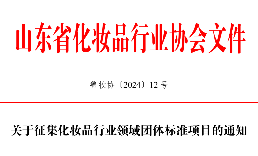 为全面贯彻落实党的二十大精神,落实《国家标准化发展纲要》《关于贯彻〈国家标准化发展纲要〉推进标准化创新发展的实施意见》等要求,进一步推动团体标准在支撑和引领化妆品行业发展中的作用,构建化妆品行业标准体系,实现行业规范发展。山东省化妆品行业协会决定开展化妆品行业领域2024年团体标准项目征集工作。现将有关事项通知如下: