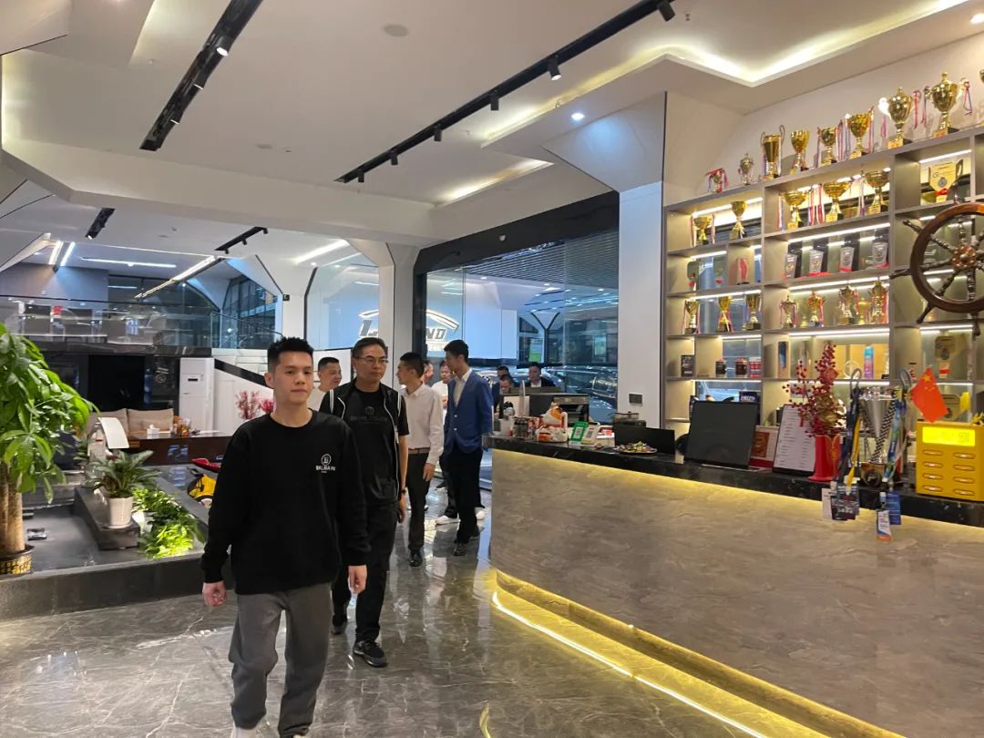 3月17日下午,商会一行在林建武秘书长的带领下参访商会会员徐晓君旗下粤湾名车广场,受到徐晓君董事长及公司团队的热情欢迎。