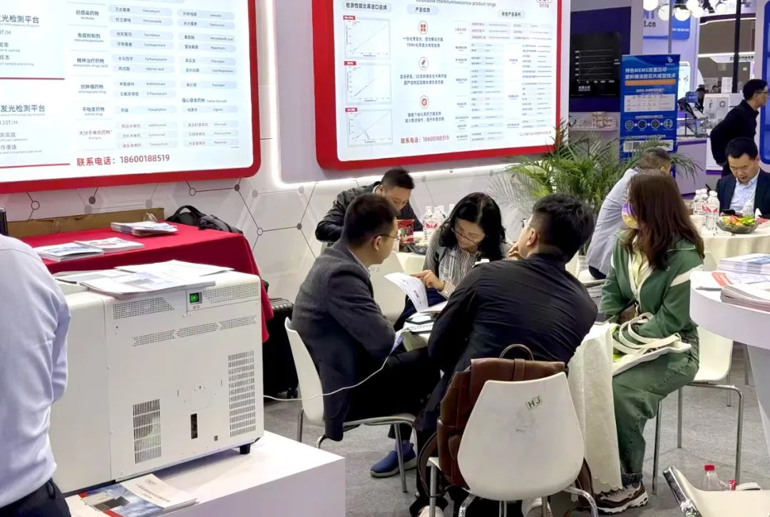 展会现场丹大生物重点展示了其结合客户需求,突破性实现了小分子与大分子药物同一平台检测技术,目前可开展30余种大分子及小分子药物浓度检测。这一突破性技术还具有极高的灵敏度和特异性,为药物研发和临床试验提供了强有力的支持。现场许多参会者纷纷驻足观看、咨询交流。