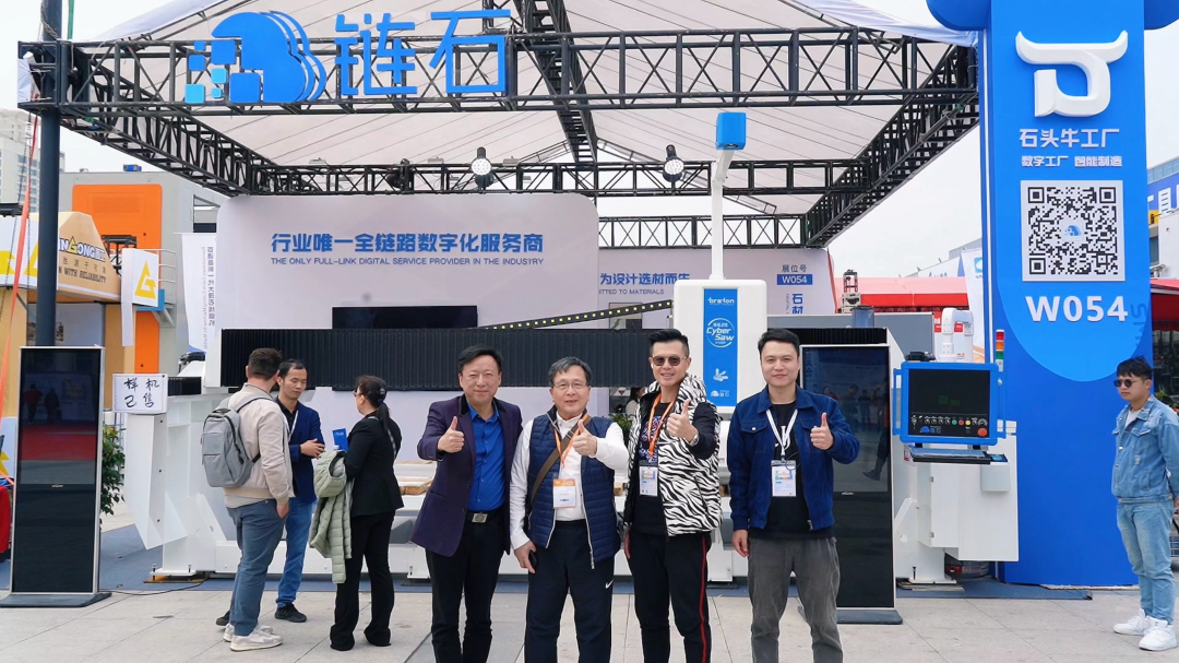 在链石的展位上,最直观的智能桥切机,演示着四轴定位、纹路精准桥切,吸引了不少石材机械采购商的热议,来自台湾的客户,竖起大拇指表示:既满足他想要的智能化桥切,切割精灵又能模拟裁切,覆盖了从荒料管理到智能生产交付。机器太厉害了。
