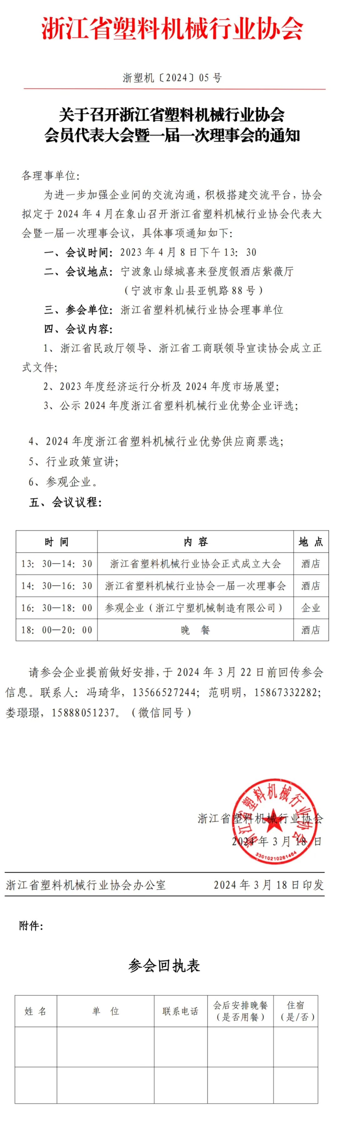 协会动态丨关于召开浙江省塑料机械行业协会会员代表大会暨一届一次理事会的通知