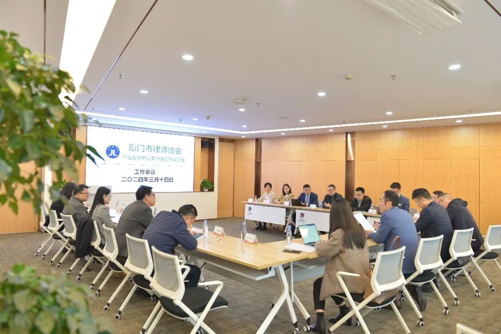 2024年3月14日,厦门市律师协会第九届产业发展与公司律师工作委员会(下称“产业发展与公司委”)第二次全体会议在福建世礼律师事务所召开。本次会议由市律师协会常务理事、产业发展与公司委主任黄志勇主持,市律师协会监事谢志祥出席会议进行履职监督,特别邀请厦门厦钨新能源材料股份有限公司汪超律师、厦门市政环境科技股份有限公司田楚姿律师和中信银行股份有限公司厦门分行邱燕秋作为公司律师代表列席会议。
