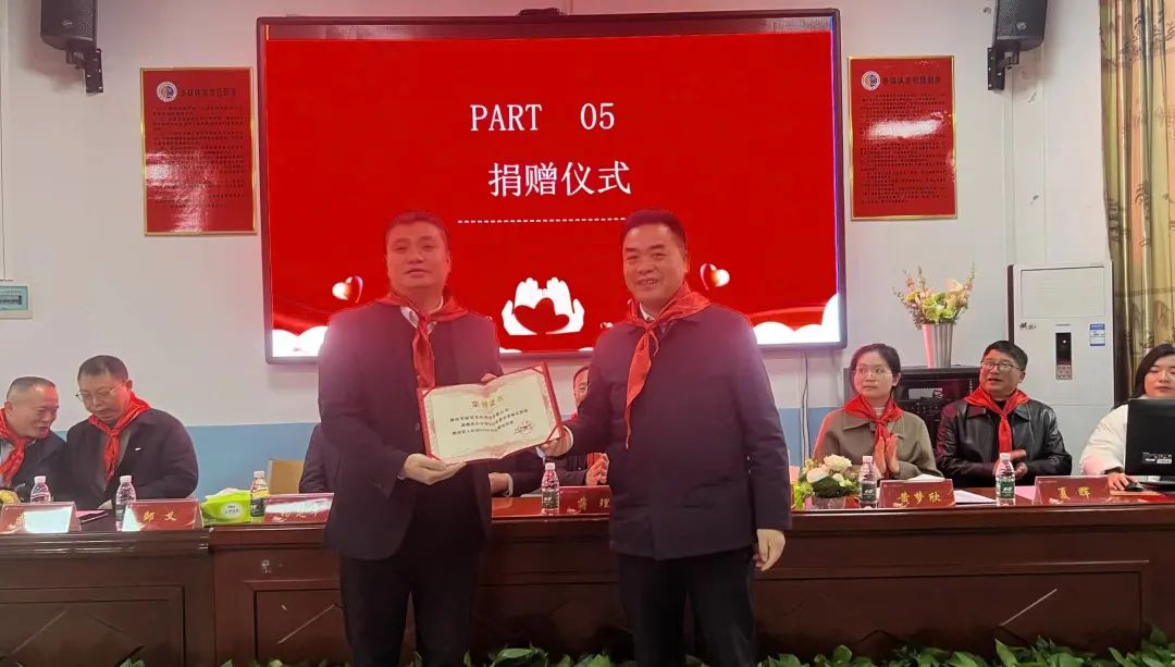 捐赠仪式上,沅江市教育局沈迪文局长为智耐特公司邹义总经理颁发捐赠荣誉证书,并代表沅江市教育局向给予沅江市教育事业关心支持的智耐特公司等爱心企业和社会各界表示感谢。