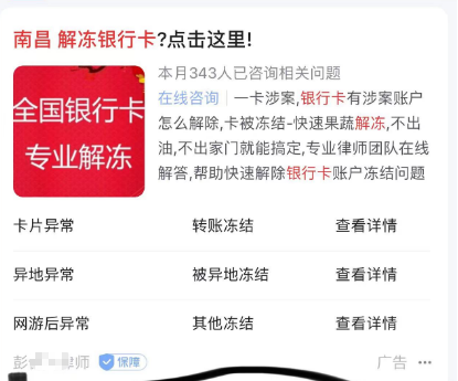 今年突然,银行卡解冻服务冒头,已经在百度上大力推广了。