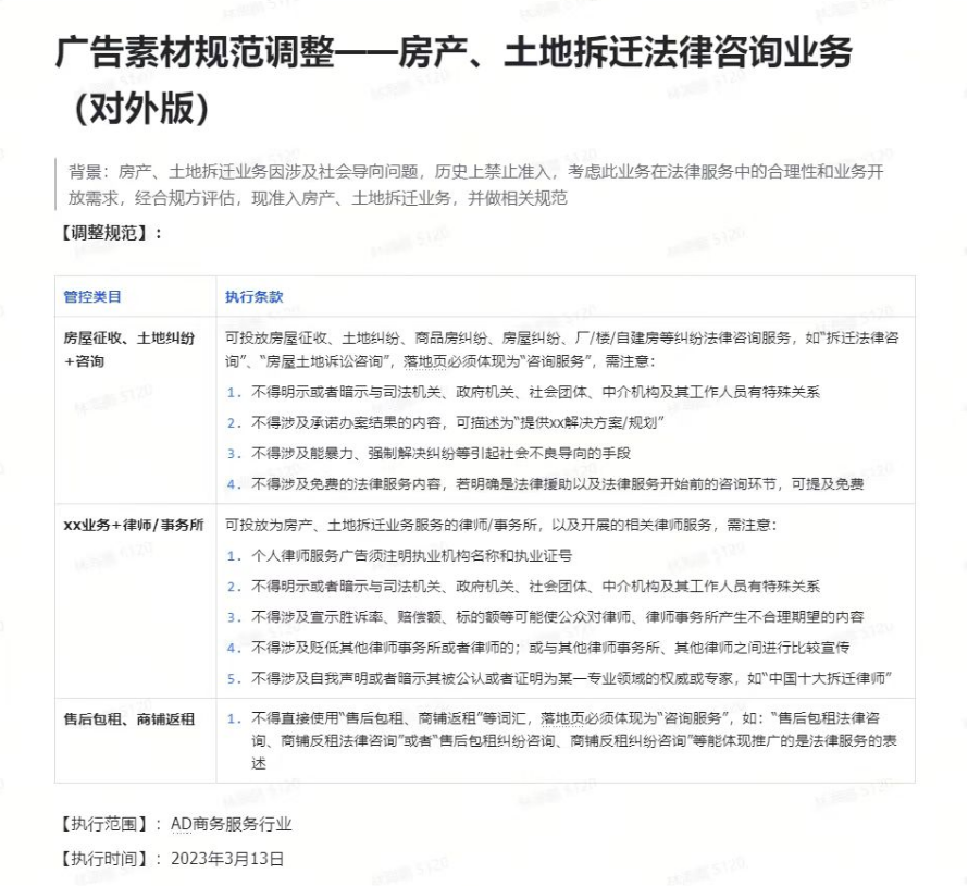 征地拆迁业务推广,因为是行政诉讼,涉及到公权力,还有涉及到敏感的强拆等,之前在抖音上是不可以推广的。