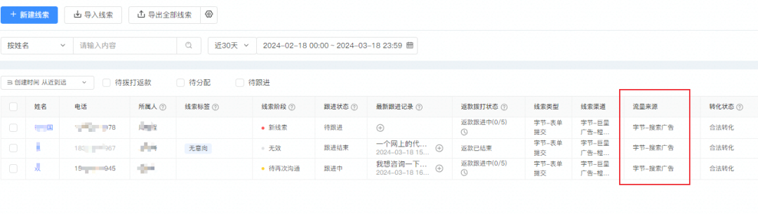 从今年开始,发现抖音的信息流流量在下降,搜索的流量提升了很多,很多案源都是搜索来的。