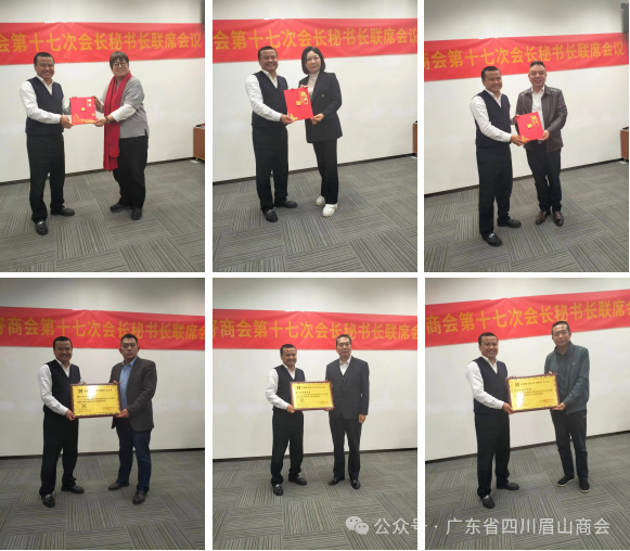 会议期间,还确立了“筹备成立6+友好商会律师专委会(或法律顾问合规委员会)”事宜,此举措旨在在加强商会会务工作的同时,要加强企业合规建设。经过前期筹备及本次会议确定,拟由眉山商会与达州商会共同筹备法律顾问合规委员会(暂定名),由广东省四川眉山商会会长单位——广东君道律师事务所,指派徐永申主任律师团队为与会之六家商会提供常年法律顾问服务;并在会议现场举行了授牌仪式。