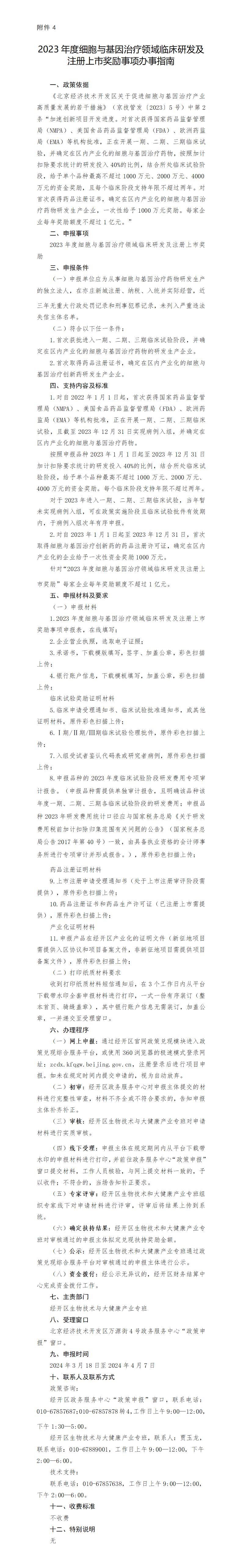 4.2023年度细胞与基因治疗领域临床研发及注册上市奖励办事指南