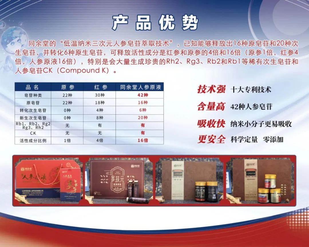 同余堂的“低温纳米三次元人参皂苷萃取技术”,已知能够释放出16种原皂苷和20种次