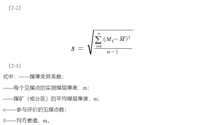 (二)煤层稳定性定量评定薄煤层评定以煤层可采性指数Km为主,煤厚变异系数γ为辅;中厚及厚煤层评定以煤厚变异系数γ为主,可采性指数Km为辅。参照指标见表2-3。
