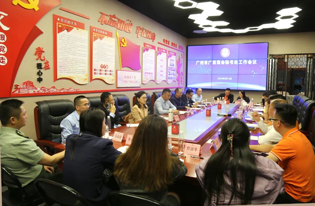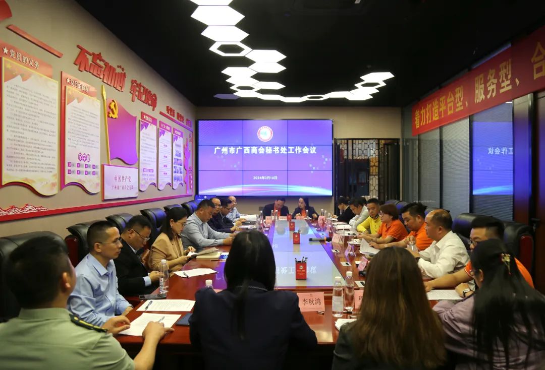2024年3月16日,广州市广西商会秘书处工作会议在商会会议室召开,广州市广西商会会长覃录强,副会长兼妇联部部长范浣诗,副会长兼宣传部部长苏瑞腾,副会长易海铭,秘书长谭栋元,执行秘书长朱红荣,副秘书长李君莲、孔媚,法律与金融专委会秘书长刘延烽,照明专委会秘书长凌小茵,退役军人服务委员会秘书长蓝林辉,青年企业家委员会秘书长韦全高、南沙办事处秘书长冼彬以及各分支机构秘书处成员共30多人参加会议,就凝聚商会力量、助力新桂商崛起、共筑新桂商品牌深入探讨了商会的工作策略与规划,共同推动商会的高质量发展。