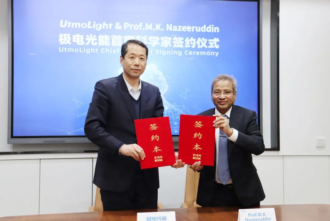 1月16日,极电光能举行签约仪式,钙钛矿领域顶级科学家M.K.Nazeeruddin院士正式全职加入极电光能,担任极电光能首席科学家。