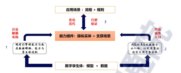 重构多能力集成且生态开放的数字孪生新引擎。由于多数“数字孪生平台”仅是GIS引擎、 BIM引擎、渲染引擎的表面融合,这类传统技术引擎与数据绑定严重,难以支撑上层应用,可扩展性差。数字孪生要实现精准映射、虚实互动、软件定义、智能干预四大特征,需要集成多引擎的技术能力,重构多能力集成且生态开放的数字孪生新引擎,打造能力集成、生态开放的城市数字孪生底座平台。