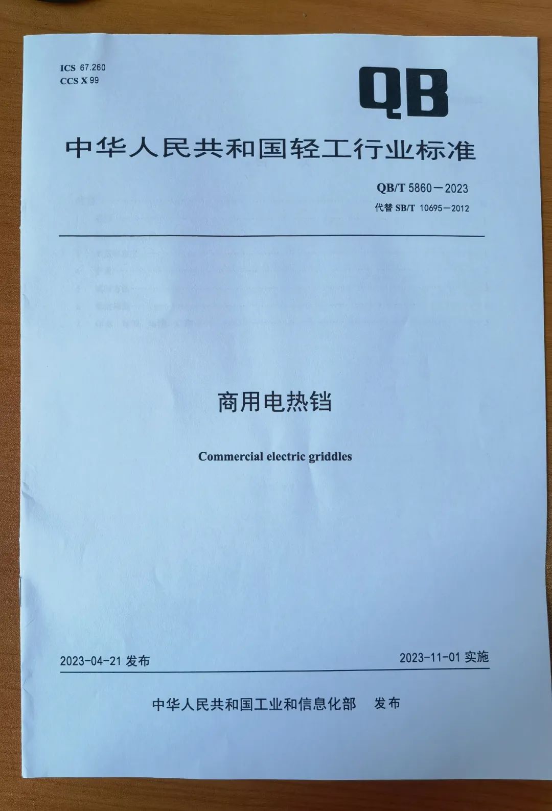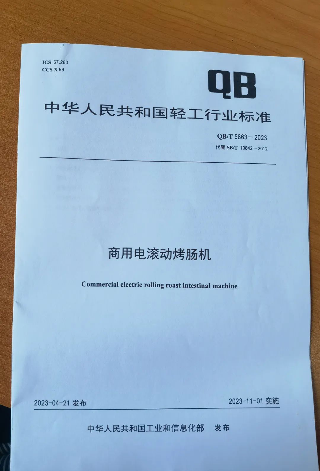 近日,由国家工信部发布,由中国轻工业联合会提出并由中国酒店用品协会参与起草的两项行业标准QB/T5860-2023《商用电热铛》和QB/T5863-2023《商用电滚动烤肠机》已经正式发布并实施。